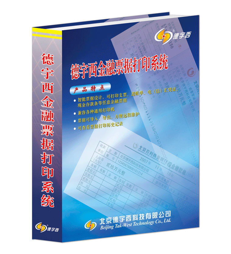 智能票据设计,用户可自己新建票据;基于电脑和通用打印机可以打印支票、进帐单、电(信)汇凭证、现金存款条等任意金融票据,票据上收款人、大写金额、小写金额、日期等全部内容可一次打印完成...